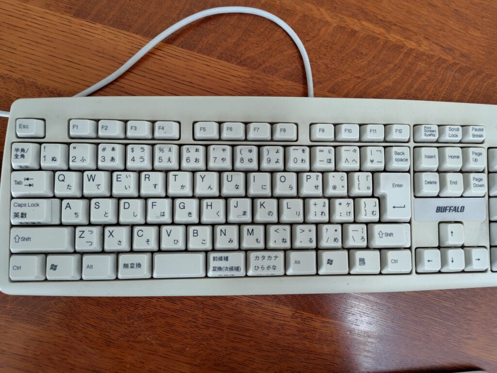 なので、上から二番目のヨドバシで買ったバッファロー製品でずっと代用してきた。うれしいことに汎用キーボードなので価格が安い。ただし条件があって、スペースキーの幅が狭いことが、親指シフトにとって重要だ。
