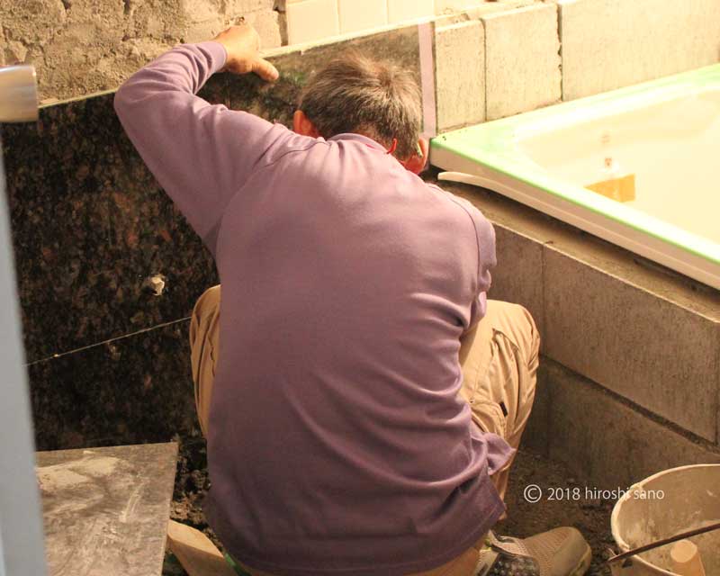 施設の大浴室からレンガで組んだ庭のバーベキュー炉まで、つくるものは多種だ。ひとつとして同じものがない。出来るかぎりの技術がそこにつまっている。